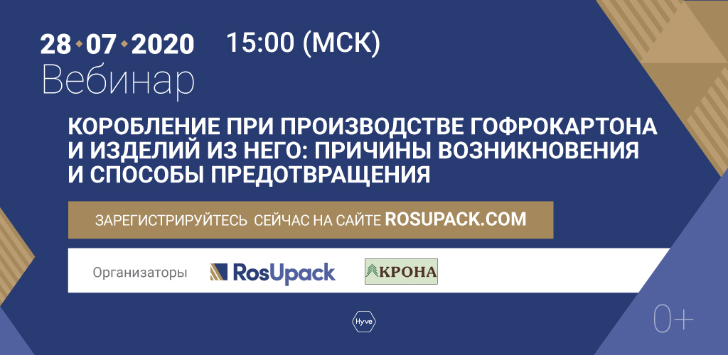 Команда RosUpack и Институт «Крона» приглашают вас принять участие в бесплатном вебинаре "Коробление при производстве гофрокартона и изделий из него: причины возникновения и способы предотвращения". Вебинар состоится 28 ИЮЛЯ 2020 (ВТОРНИК) В 15:00 (МСК).