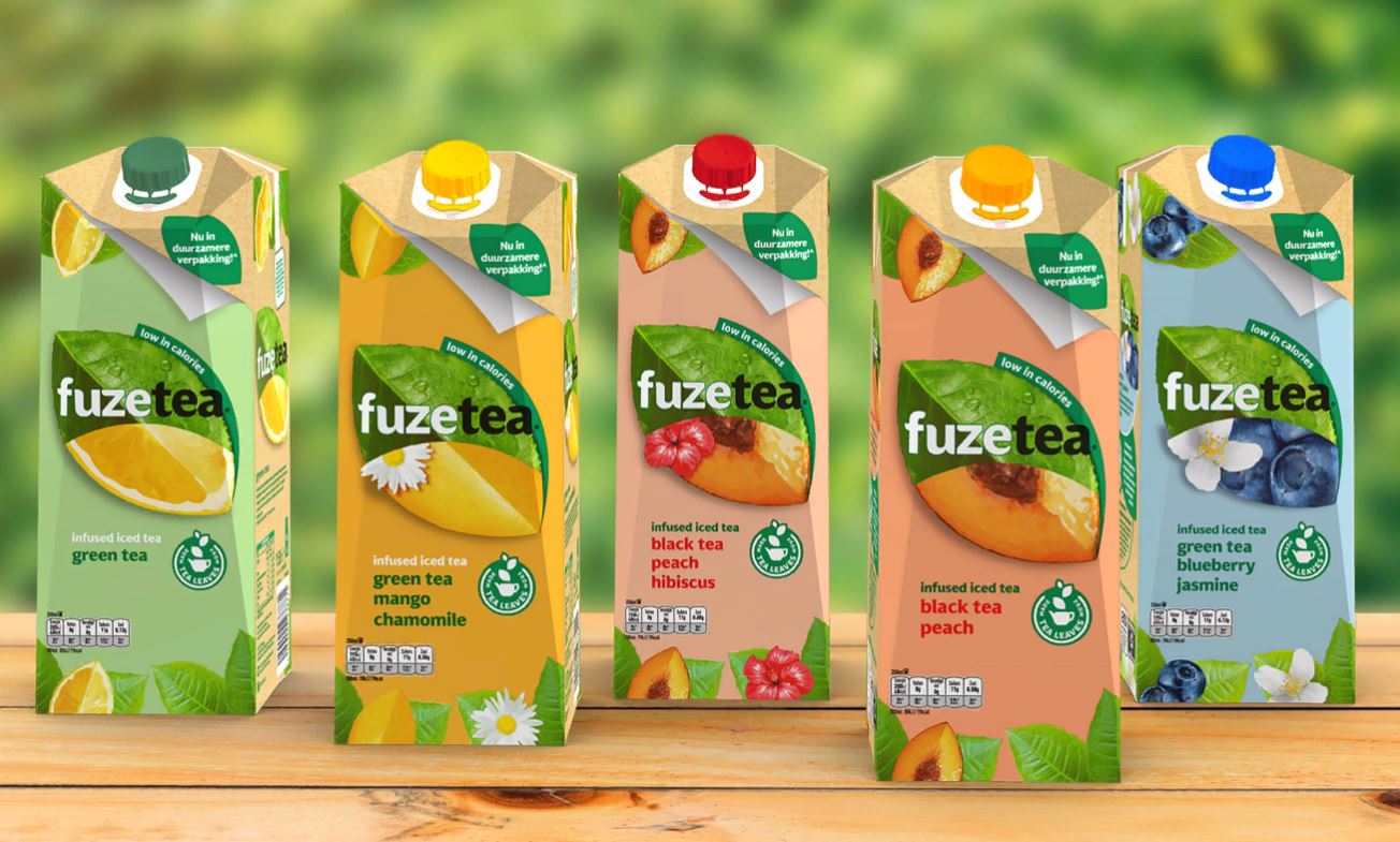 From March 2021, Coca-Cola’s Fuze Tea's carton packs in the Netherlands are being produced more sustainably by using 100% responsibly sourced materials, that are 95% linked to plant-based raw materials which results in CO2 saving. Fuze Tea is the first brand in the iced tea category to switch to more sustainable carton packs by using SIG’s carton packs with the innovative SIGNATURE packaging material.