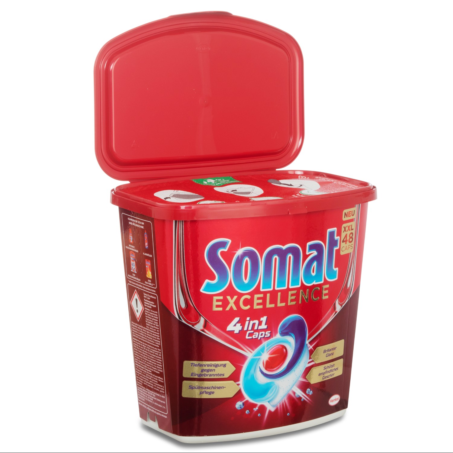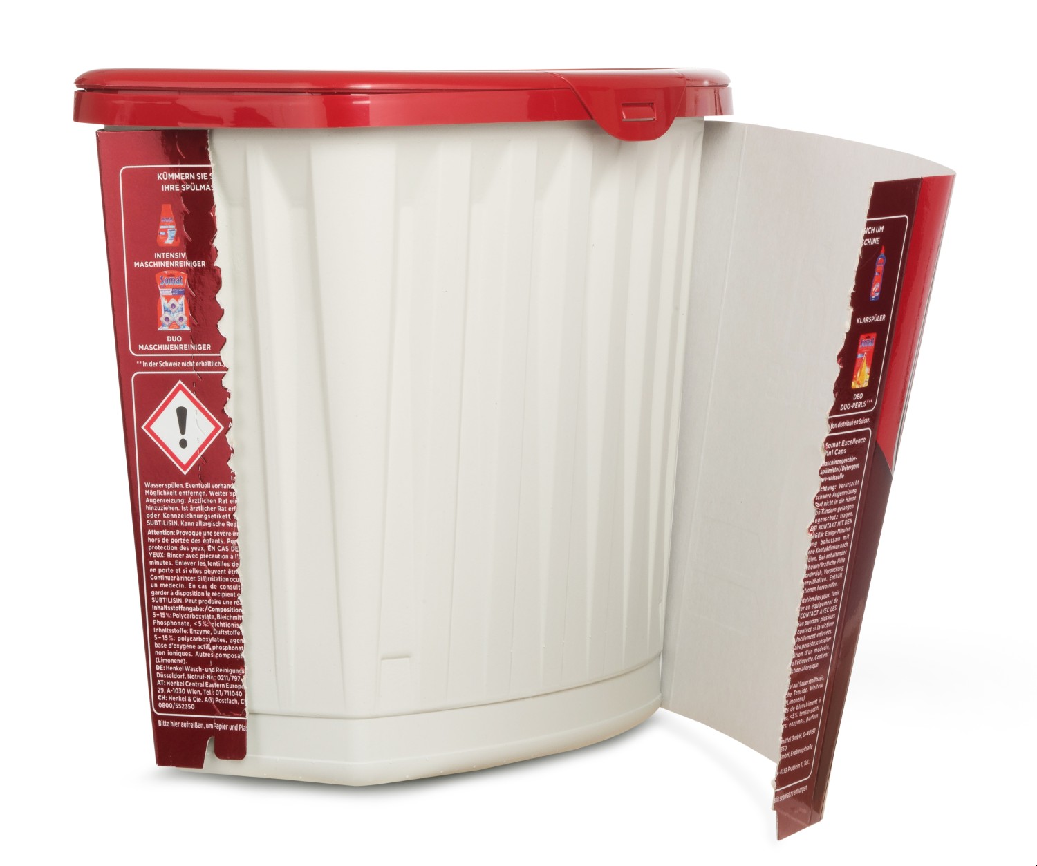 As a manufacturer of sustainable plastic packaging, Greiner Packaging is constantly in the business of responding to new product types and requirements. One recent example is the new Somat Excellence 4in1 dishwasher caps from Henkel. These use a unique technology that combines powder and three solid gel chambers, which consumers will only have seen from laundry detergent products to date. The caps are securely packaged in cardboard-plastic combinations and an innovative lid solution from Greiner Packaging.