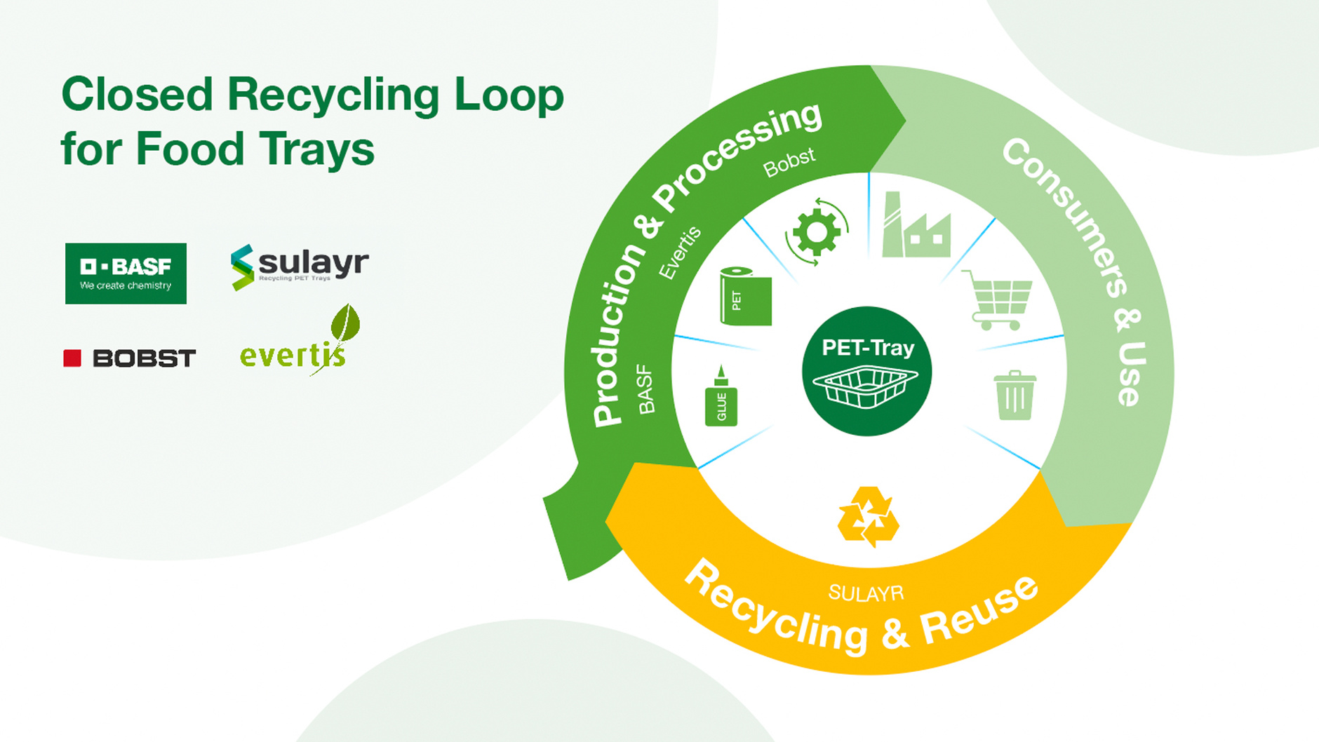 Four industry partners are collaborating on industry-leading approach for closed-loop recycling of PET-based multilayer laminates used for thermo-formed food trays. BOBST’s coating expertise is key to success of innovative process which is an important step towards universal recycling of PET.