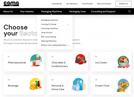 According to Paola Fraschini, Marketing Manager at Cama Group: “Website design has evolved significantly since our last revision, and we knew we needed to keep pace with the popular business and consumer sites out there. The new mobile-friendly site has been designed specifically to give visitors the information they need to make an informed decision in as shorter time as possible. People don’t want to go sightseeing when specifying machinery, they want clear, unambiguous answers to their packaging challenges.”